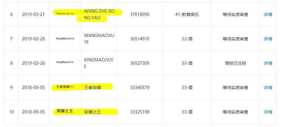 一家酒厂,将“ 王者荣耀”抢注成了酒类商标,还注册了“王者荣耀1915”、“王者荣耀归来”,以及“WANG ZHE RONG YAO”的拼音。
