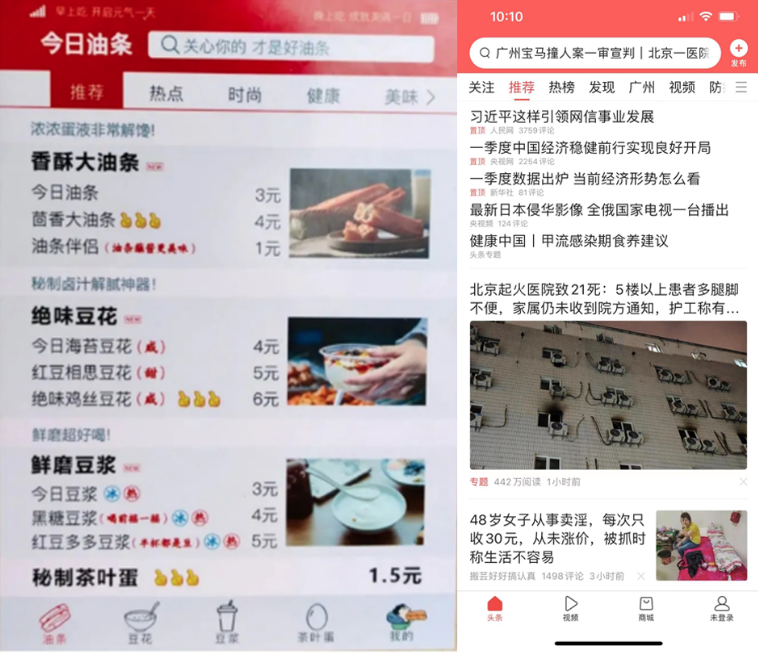 还有今日油条的广告语,把今日头条的“你关心的 才是头条”改成“关心你的,才是好油条”。